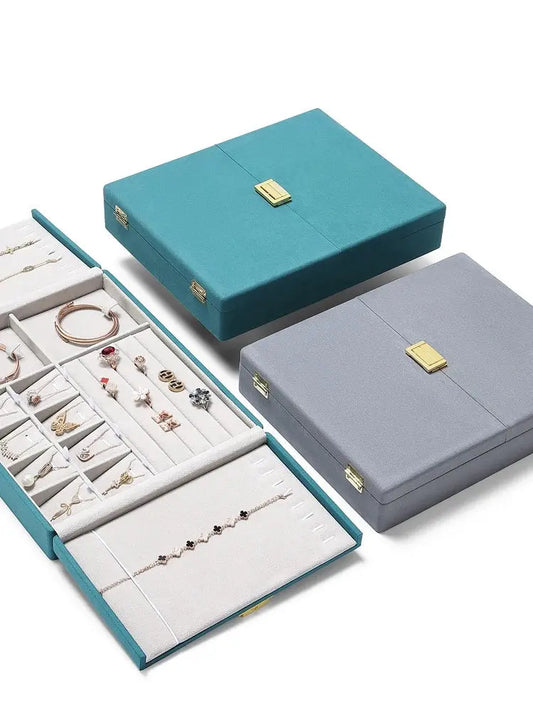 Double open jewelry storage box, metal buckle ring, necklace, stud earrings, pendants, jewelry storage, packaging, gift box