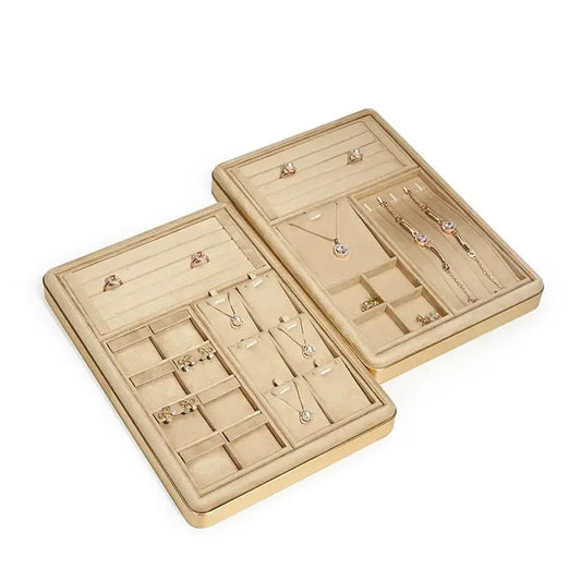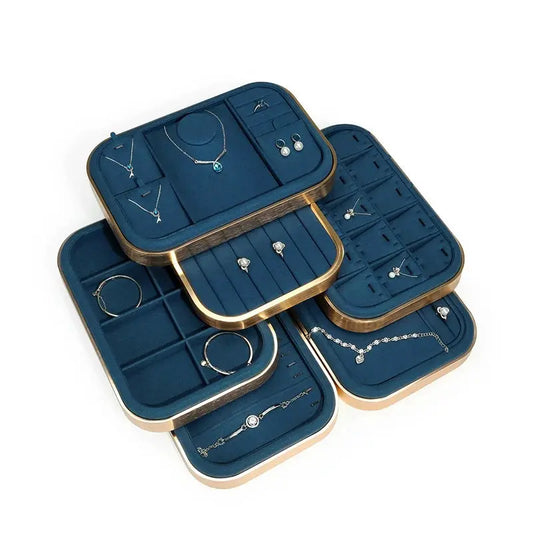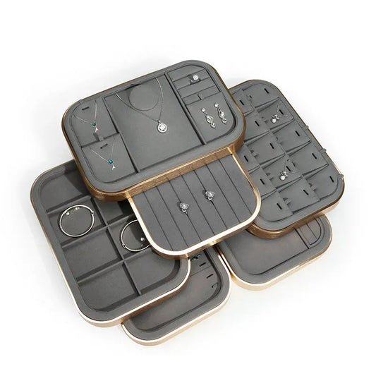 Jewelry Display Tray Props Microfiber Necklace Ring Earrings Tray Metal Jewelry Viewing Tray