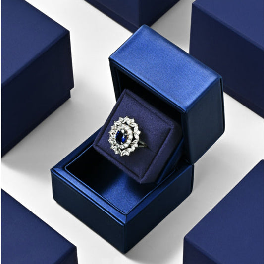 New Ring Storage Box Wedding Proposal Pair Ring Box Blue PU Leather Couple Ring Gift Box