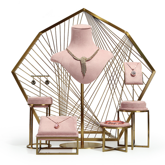 Pink Window Display Props, Metal Jewelry, Necklace Display Shelf, Neck Jewelry Display Props