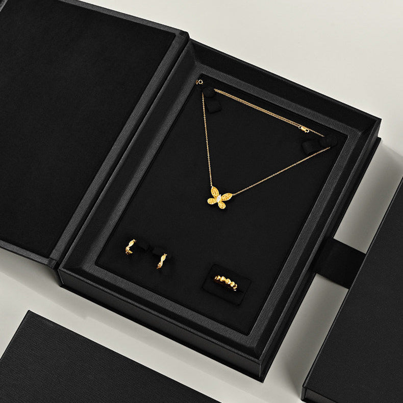 Jewelry storage box creative ribbon book box flap ring necklace jewelry display gift box